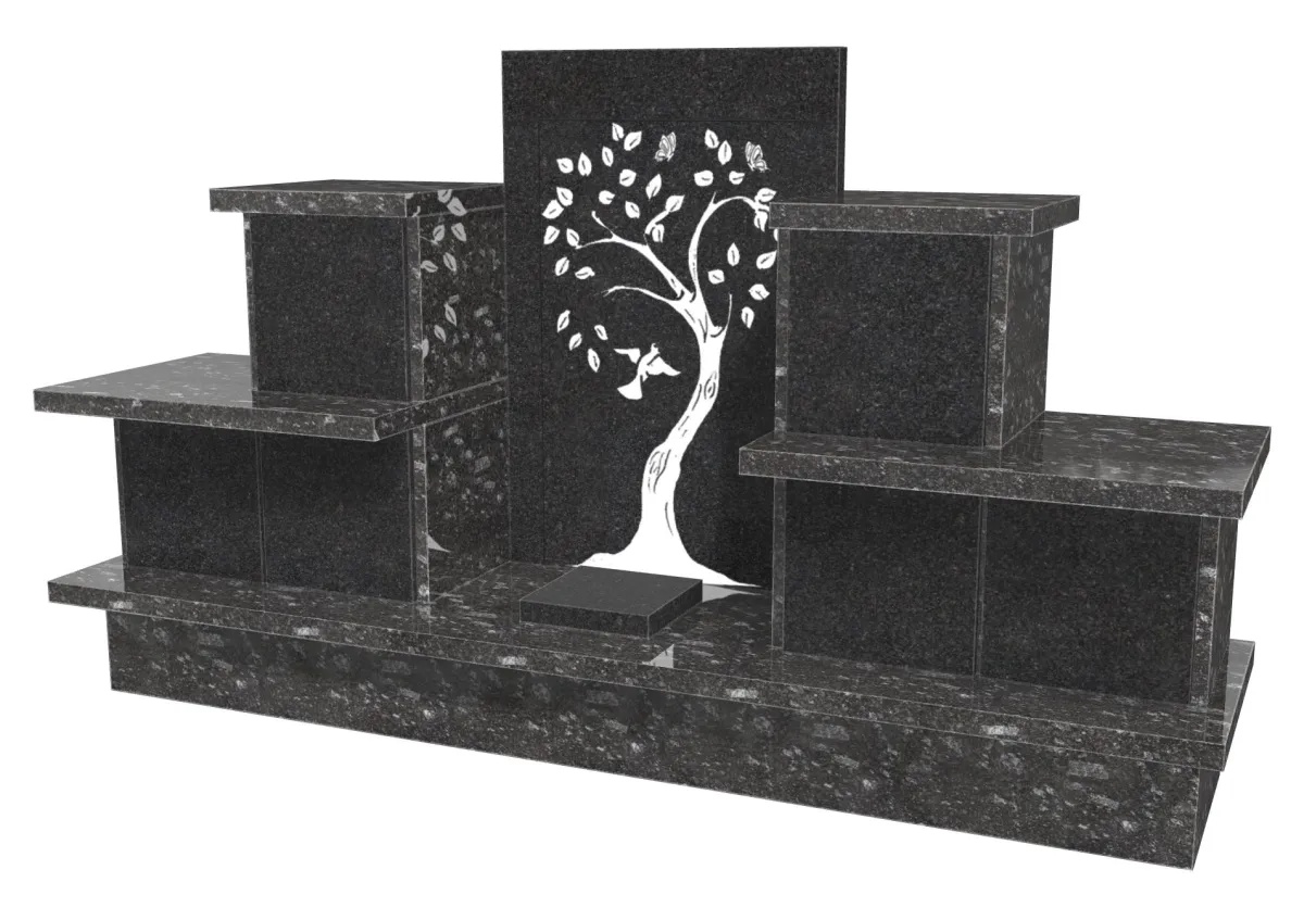- Stèle avec motif arbre et papillons lithogravé en blanc